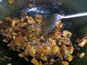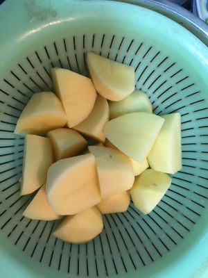 洗干净锅下姜片花胶然后下排骨下海椒水炒好下土豆炒后加水,老抽,大火。