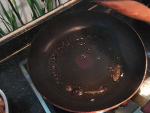 热锅凉油, 放入郫县豆瓣酱和姜片进去煸炒;