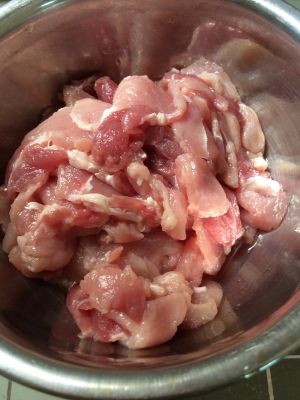 把腌制好的肉放入锅里煮熟,瘦肉很容易熟,时间久了肉就老了,煮沸一分钟即可捞起来装碗