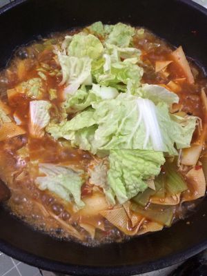 煮过配菜的汤继续烫肉