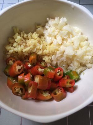 辅助调料备好,生姜大蒜末,2根湖南椒切节