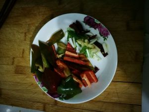 准备好葱姜蒜,菜码辣椒