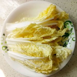 油烧开,将木耳,白菜叶,黑豆腐,蒜苗等菜入锅炒熟,放点盐,入盆备用,将肉片放盐料酒,欠粉腌制会儿
