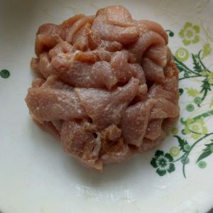 里脊肉切片,加盐,耗油,酱油,料酒,水淀粉,抓匀腌制