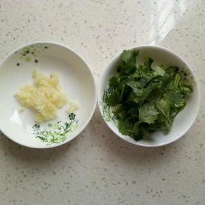 放上蒜泥,大火热油浇在上面,闻一闻很香,撒上香菜,大功告成!