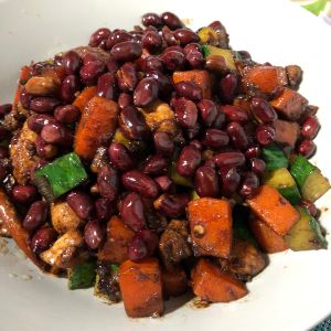 锅热下油,小火,放花椒炒香扔掉,放葱姜,干红辣椒炝锅,放胡萝卜,炒到断生以后加入鸡丁,倒入生抽、老抽、白糖各一勺,醋半勺,料酒两勺,豆瓣酱大半勺