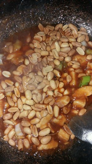 最后倒入花生米翻炒片刻,起锅
