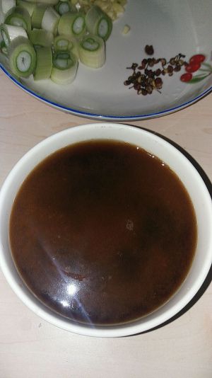 这道菜必须急火快炒,所以事先要把汁调好,准备干净小碗,放入糖,米醋,生抽,料酒,淀粉调匀备用