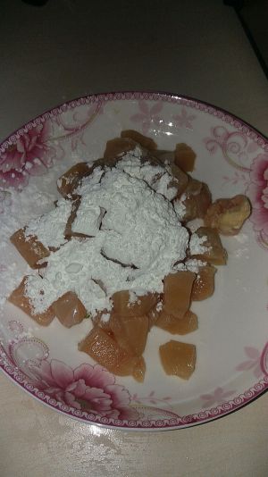 酱汁:盐,糖,鸡精,酱油,醋,番茄酱,清水。搅拌至糖化。