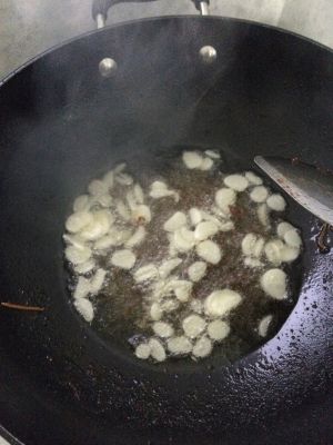 锅中放油,先下子姜、蒜头、稍炒一会。