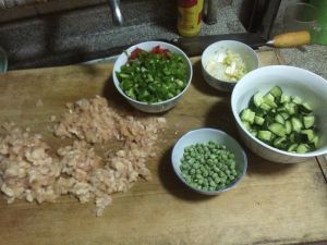 辣椒去筋,如果能吃辣的,可以忽略,切块。