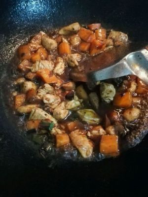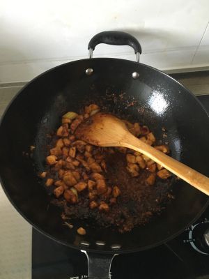 放入宫爆鸡丁酱料,翻炒至全熟。