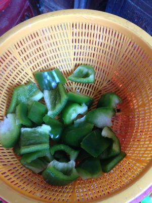 黄瓜切丁,青辣椒,红辣椒切丁,少许花椒,待用。