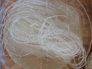 将一把粉丝用温开水泡发(记得至少泡30分钟)泡软,忘记拍照了。。凑合看吧
