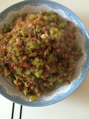 芹菜切丁儿 可以轻微过一下水 这样颜色会更绿一点
