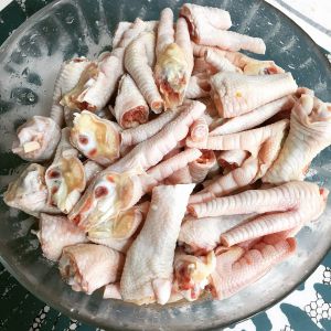 把新鲜鸡爪冲洗干净 去除指甲 剁成小块装入碗中