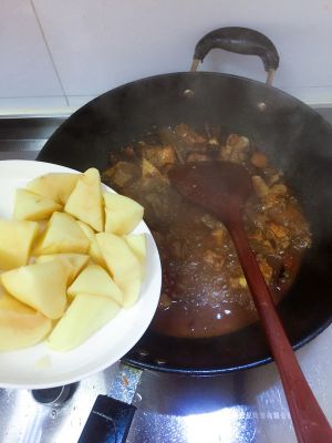 这时候把土豆放进去翻炒一下,再焖15分钟,土豆酥烂,