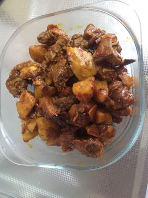 基本上不需放任何调味品,一道原汁原味的土豆烧排骨桌了,好香啊!