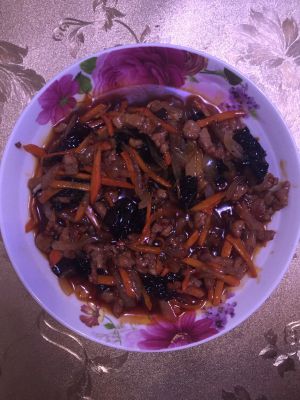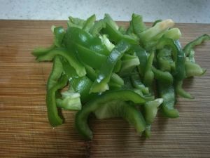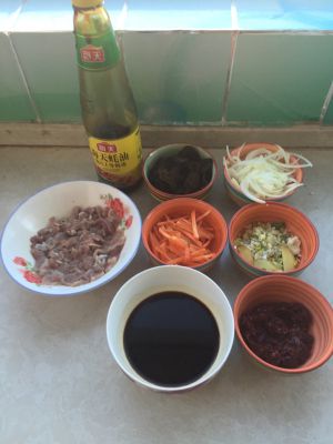 胡萝卜切丝,青椒切丝,泡发木耳撕小片。