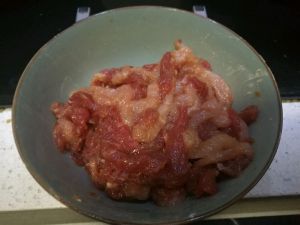 猪肉丝上浆,因为想节约,蛋黄一起打入,错误!适量蛋清就好。