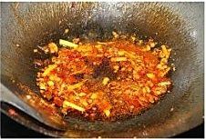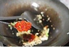 用剩余的油翻炒葱姜蒜辣椒…炒出香味。