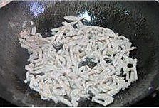 起油锅,放肉丝大火快速翻炒至基本变色盛起