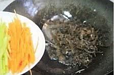 然后再将萝卜丝,木耳丝放入锅中一起翻炒…待七分熟后加入炒好的肉丝,倒入醋,糖加少许盐!即可出锅!