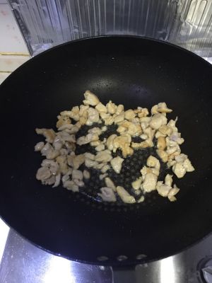 热锅倒油,加入鸡丁翻炒至变色盛出