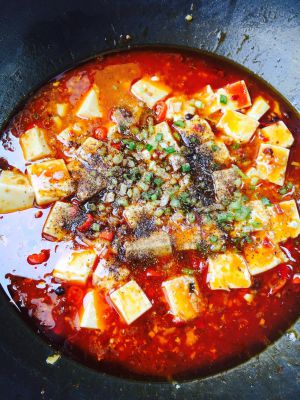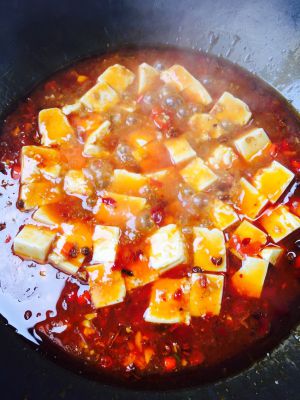 ~起锅热油将姜蒜沫爆香, ~放入肉末炒至变色后加豆瓣酱炒出红油, ~加入适量水,煮开后放入豆腐块、适量花 椒粉、白糖、生抽慢炖3分钟, ~倒入水淀粉勾芡收汁起锅装盘,撒上葱沫就可以上桌啦