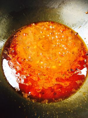 油下锅,放入豆瓣酱,小火煸炒出红油。