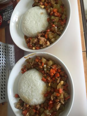 做法1:宫保鸡丁盖饭