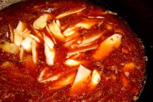 加入自制豆瓣酱(没有可放郫县豆瓣酱)、料酒、生抽、特级酱油、白砂糖、八角