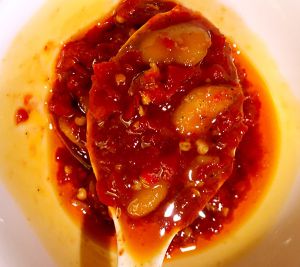 大火收汁时放入小米辣、二荆条;吐油时起锅