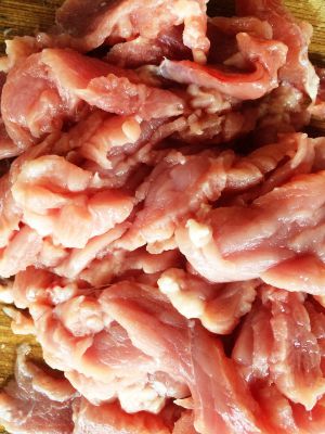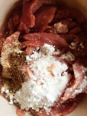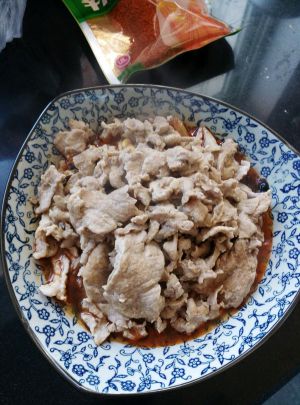 肉切薄片放胡椒面,料酒,淀粉,盐,抓匀腌制30分钟。