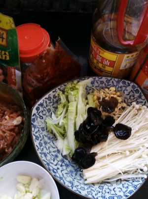 把腌好的肉片放油锅里抄3分钟,再加酱油,加盐。再添8碗水煮到水开,把煮好的肉片到到菜盆里。