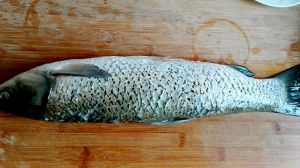 从中间切开,去掉鱼骨(4斤左右,我用了2/3)