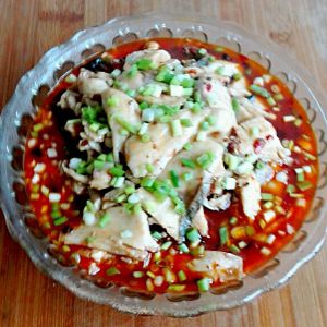再放入鱼片及汤摆盘,将2瓣蒜末及葱末铺在顶部,加少许煸过的香料,另起一锅烧热油浇下激出香味即可。