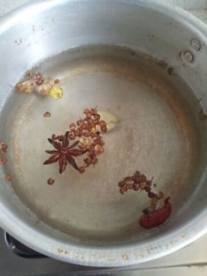 锅内烧水~放入适量花椒,八角,姜及蒜一颗。水开后放入鸡爪~煮8分钟左右。煮好的鸡爪放入冷水,用冷水冲淋半小时,去掉油脂。
