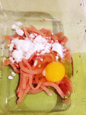 里脊切丝,打入一个鸡蛋,一勺淀粉