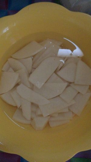 瘦肉切薄片加盐.胡椒粉.淀粉.生抽.老抽拌匀腌制10分钟