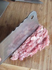 瘦肉切成肉末,加料酒,盐,鸡精,淀粉腌制15分钟左右。