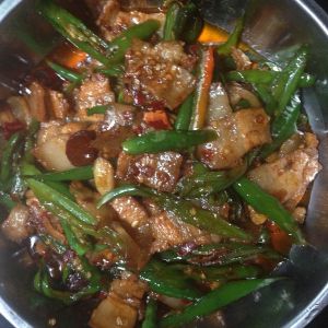 做法2:蒜苗豆干回锅肉