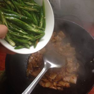 加入青椒,青椒事先用盐腌制去辣