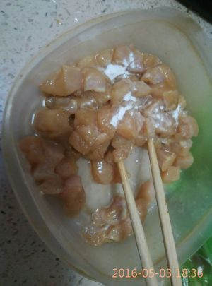鸡胸肉切丁 放入淀粉抓匀
