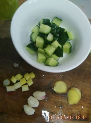 黄瓜切丁,准备葱姜蒜