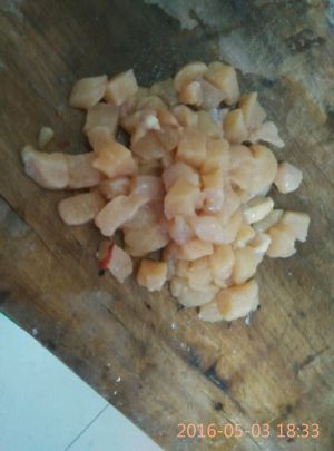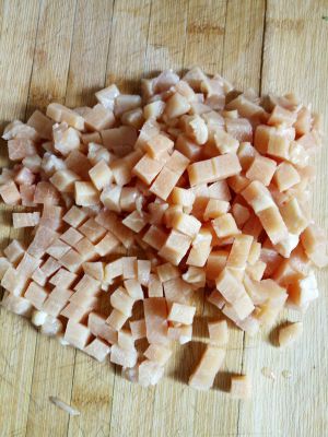 鸡胸肉切成小丁,
