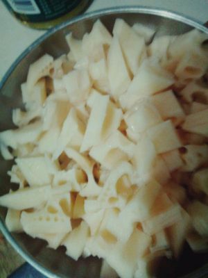 切丁,生抽一点点,料酒一点点,一勺干淀粉,抓一抓,放入油封好