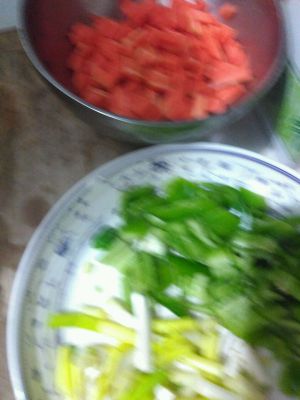 黄瓜,胡萝卜切丁,爱吃辣加了点小米辣。
