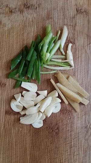 洗净后从中斩断切成小块,放入淀粉抓匀。