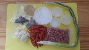 将姜蒜切好备用,酸姜酸辣椒和小米辣一起碾碎备用。